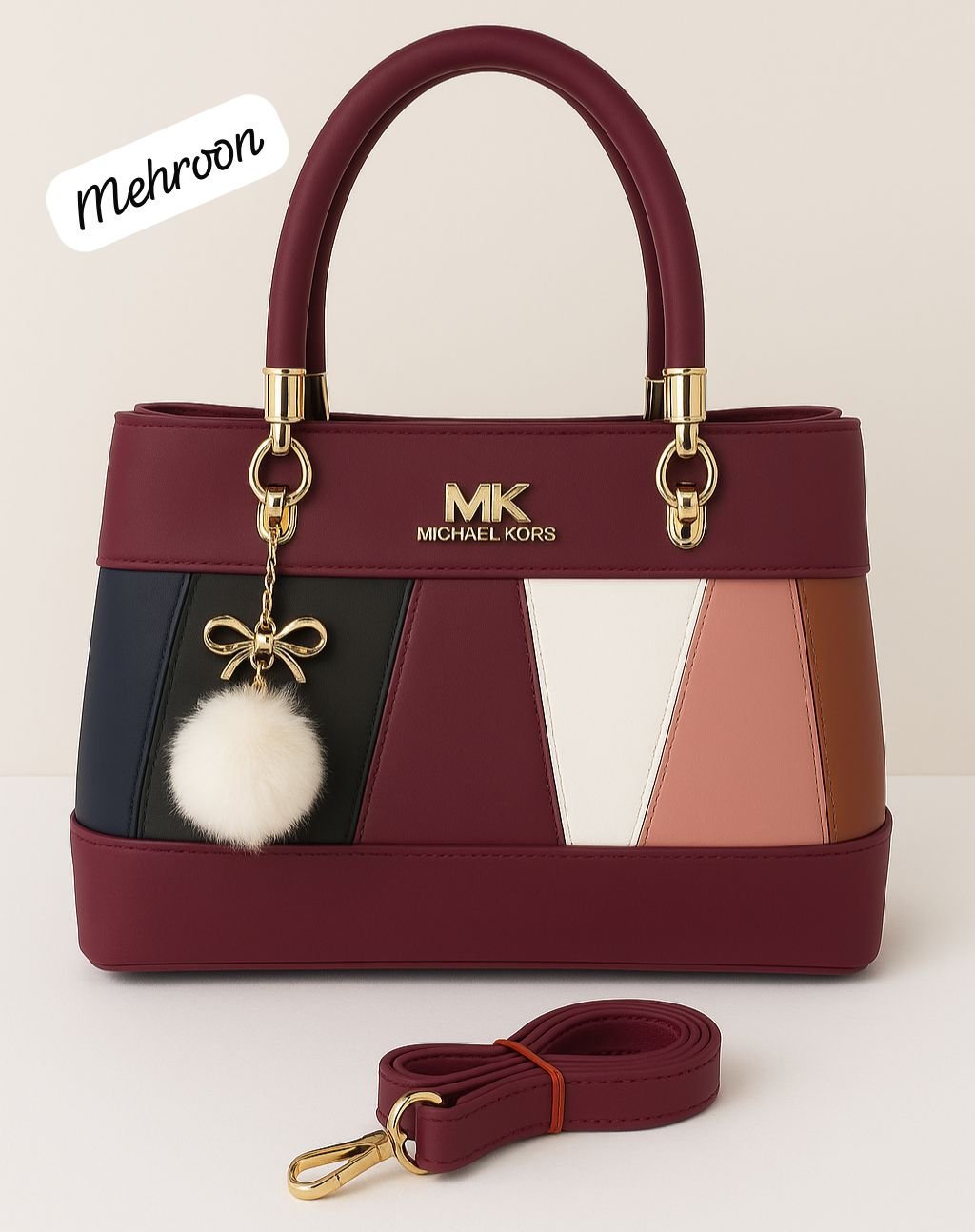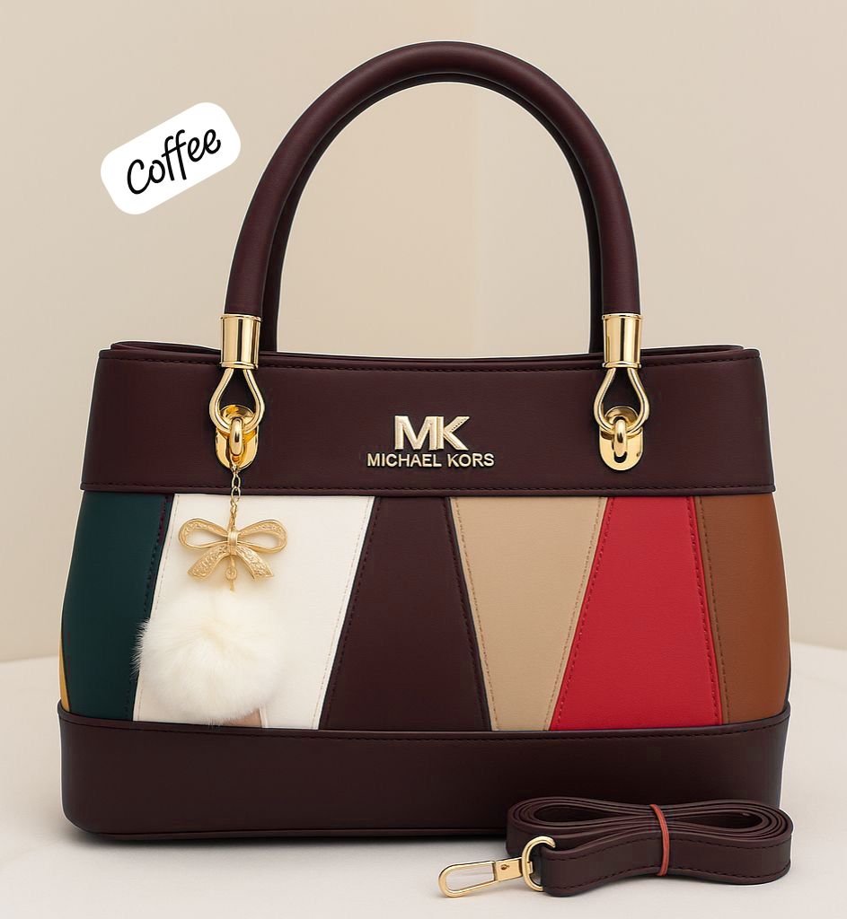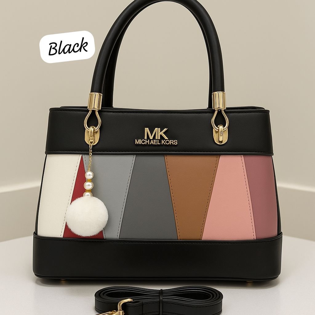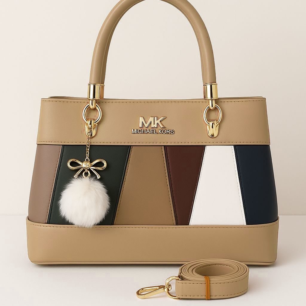 Be the first to review “Elegant Multitone Patchwork Handbag with Fur Charm”