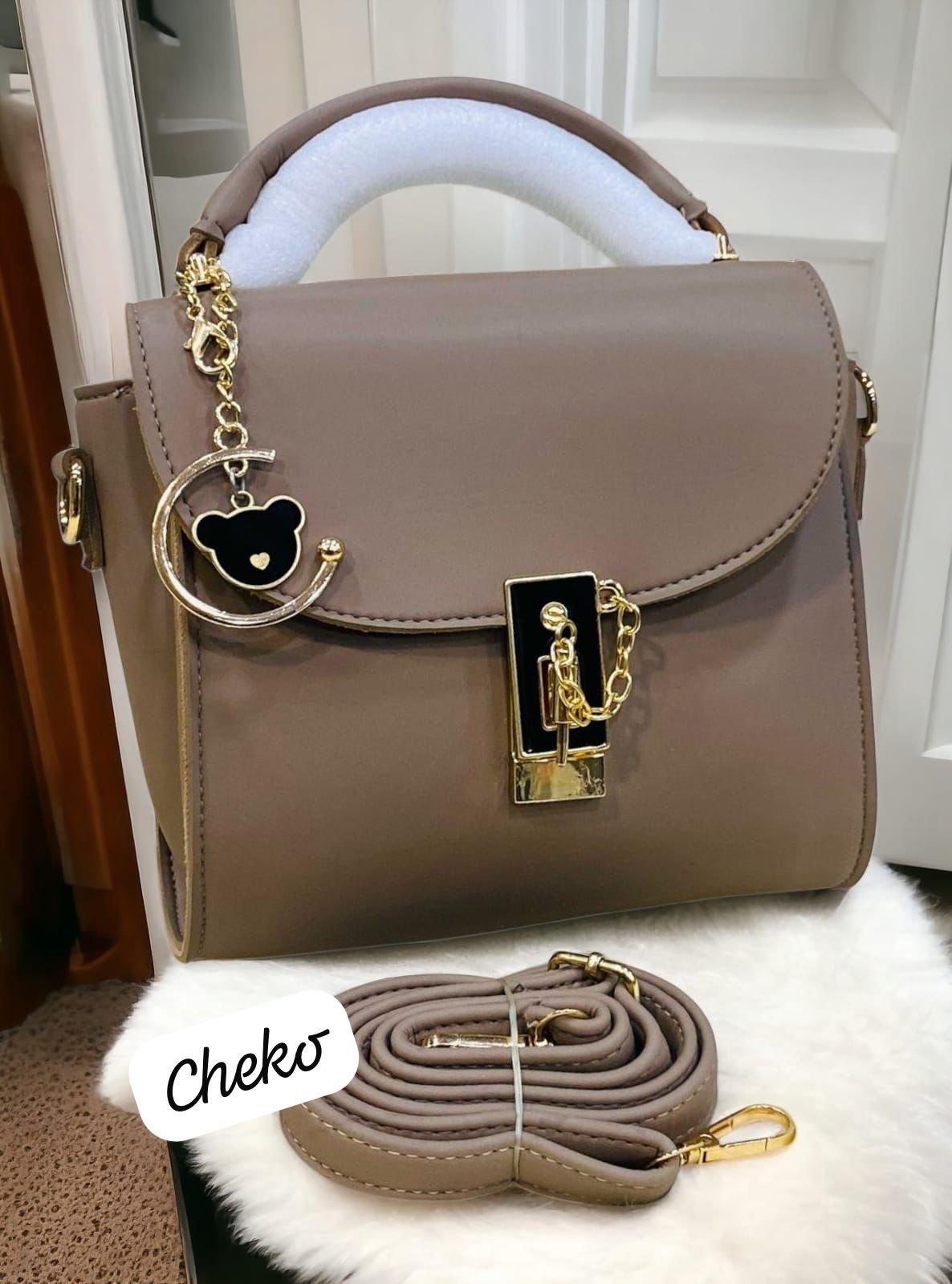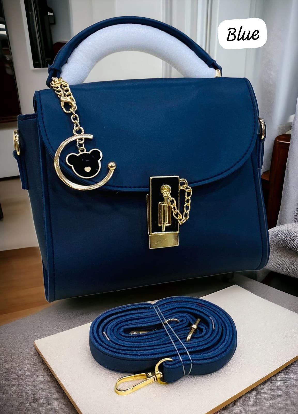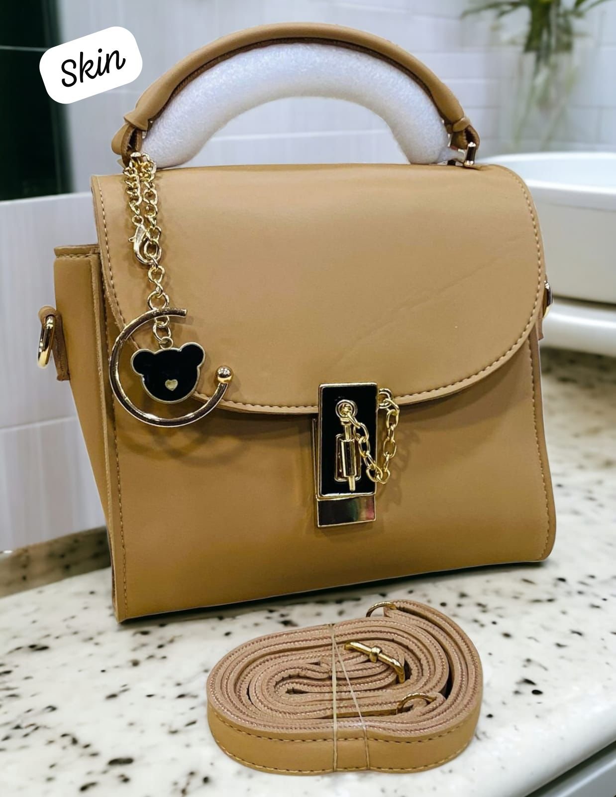 Step up your style with this Elegant Top-Handle Satchel with Gold Lock and Bear Charm Accent, a perfect blend of luxury and cuteness. Designed for modern women, this satchel features a sleek silhouette, a shiny gold-tone lock for added sophistication, and a playful bear charm for a touch of personality. Whether for daily use or special occasions, this statement piece combines elegance and charm in one must-have accessory.