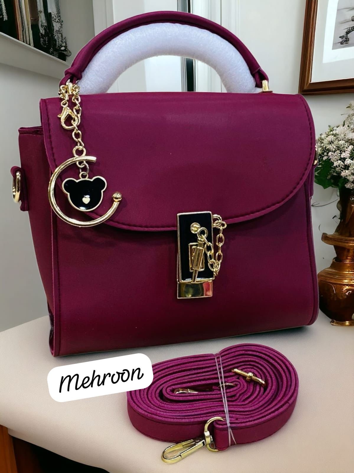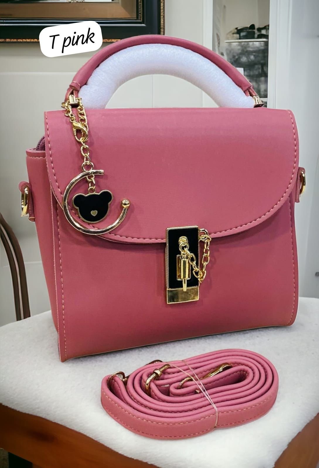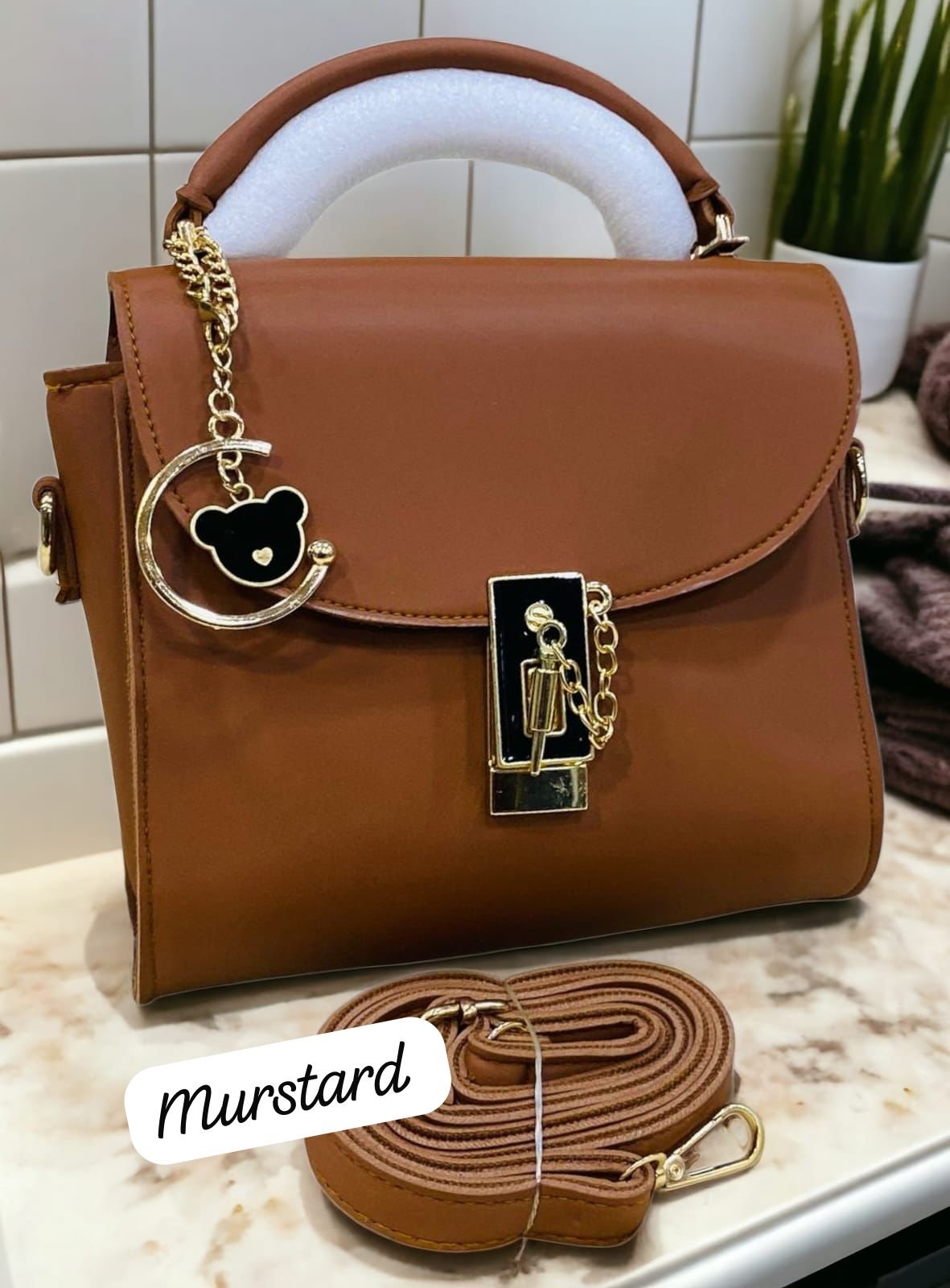 Step up your style with this Elegant Top-Handle Satchel with Gold Lock and Bear Charm Accent, a perfect blend of luxury and cuteness. Designed for modern women, this satchel features a sleek silhouette, a shiny gold-tone lock for added sophistication, and a playful bear charm for a touch of personality. Whether for daily use or special occasions, this statement piece combines elegance and charm in one must-have accessory.