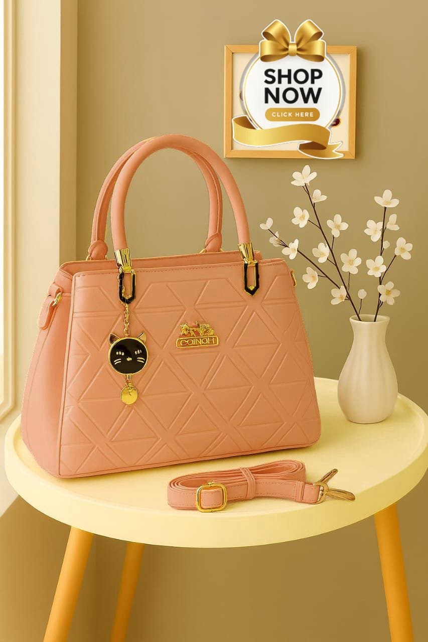 Geometric Pattern Handbag with Cat Charm & Adjustable Strap – Coach Inspired