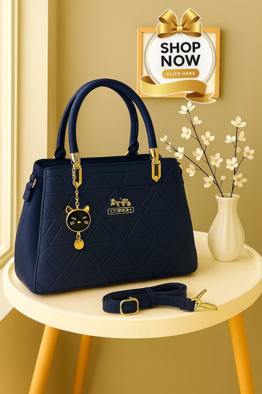 • Geometric Pattern Handbag with Cat Charm & Adjustable Strap – Coach Inspired