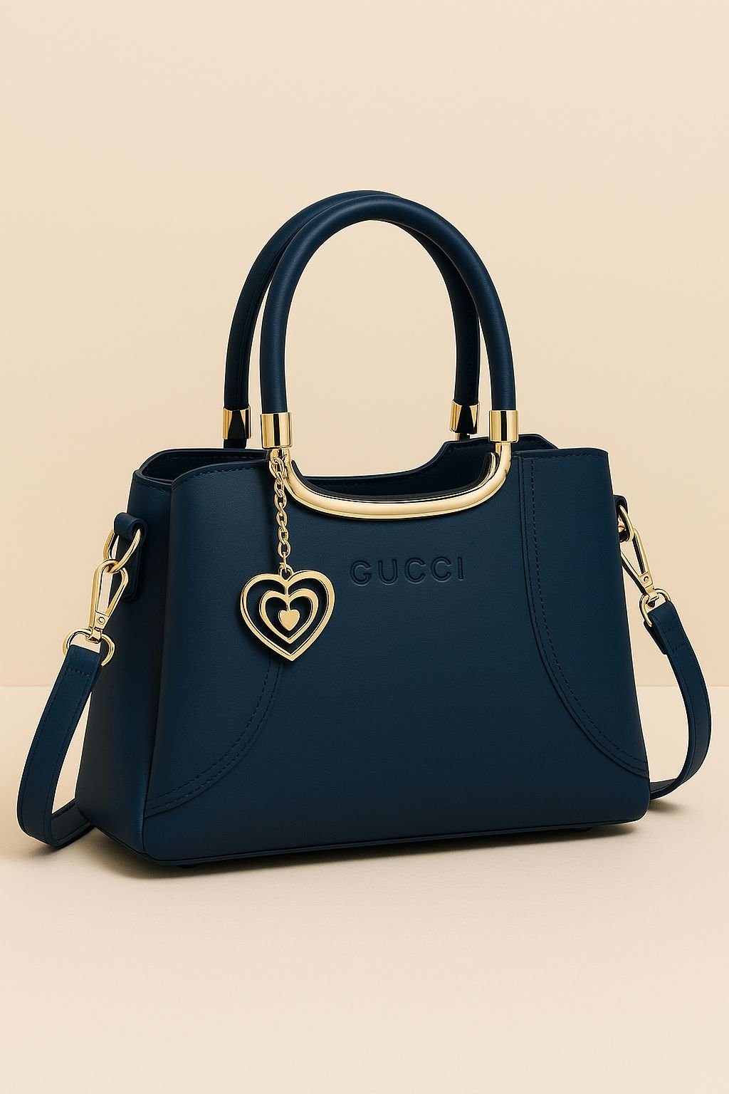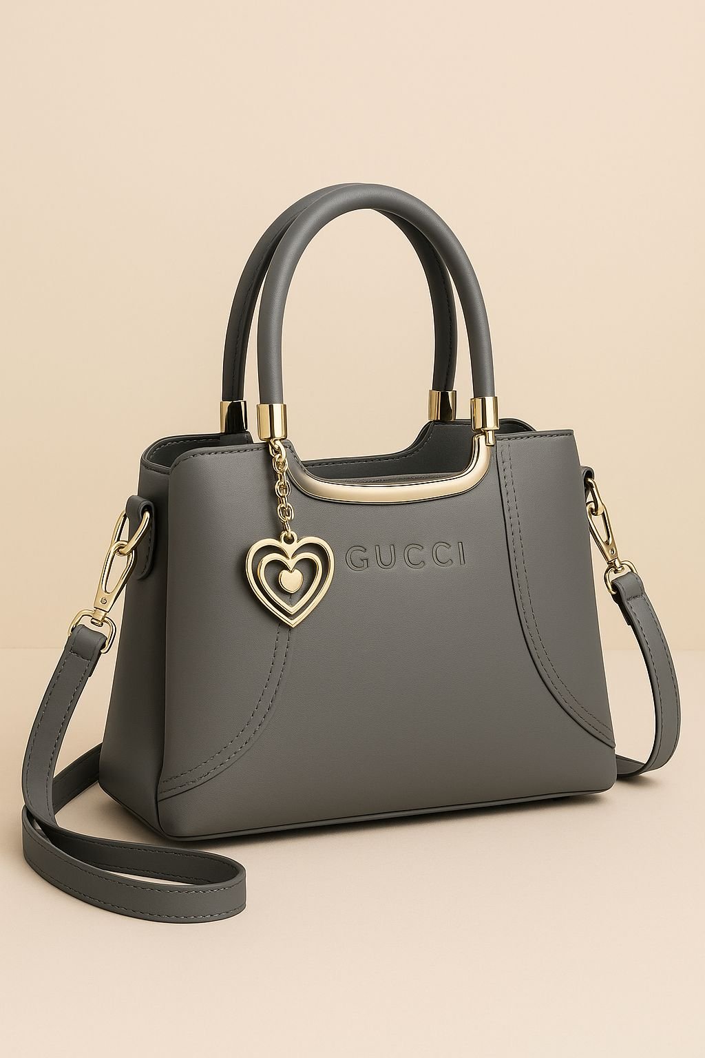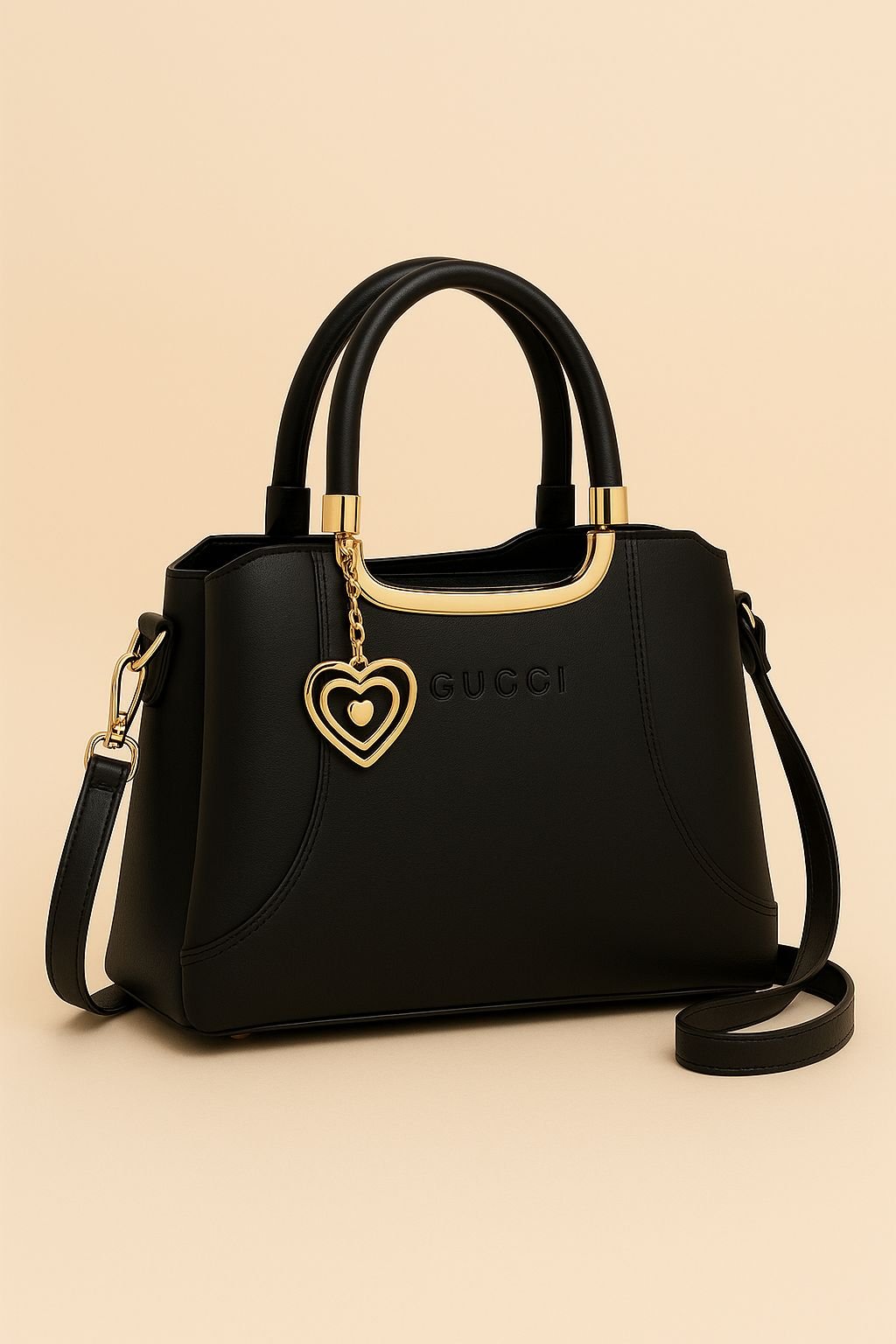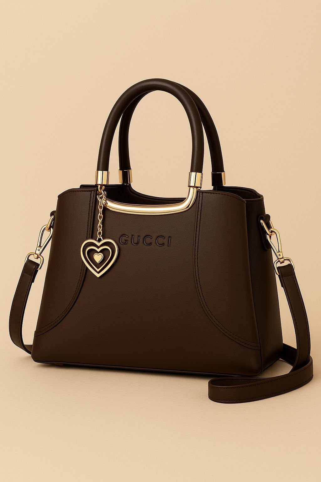 The Gucci Structured Handbag with Dual Handles and Heart Charm Accent combines iconic luxury with practical design. Its structured silhouette maintains a polished look, while the elegant heart charm adds a playful yet sophisticated detail. Crafted with premium-quality materials, this handbag offers both durability and timeless style. Designed for women who value elegance and versatility, it’s perfect for office wear, social events, or everyday outings where a refined accessory makes all the difference.