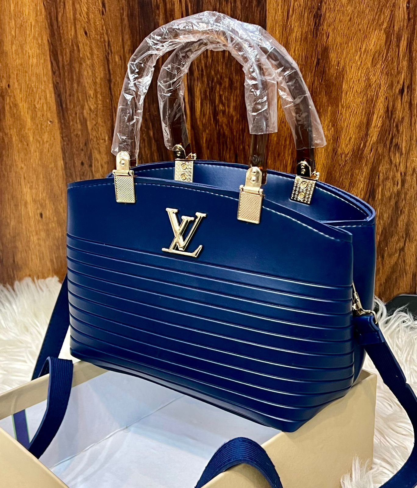 Be the first to review “Louis Vuitton Designer Shoulder Bag with Textured Wave Panel and Gold Accents”
