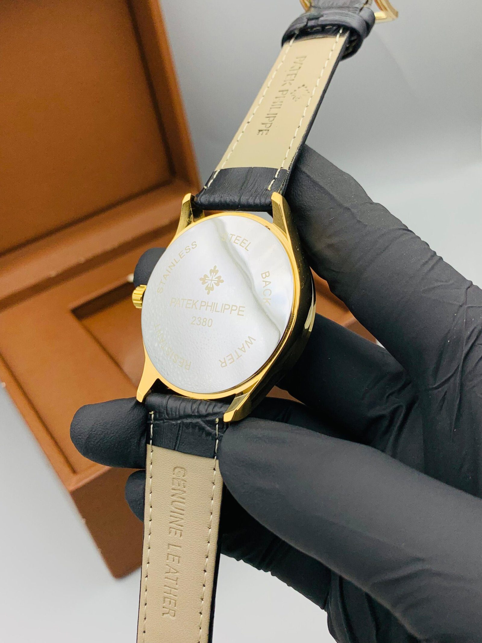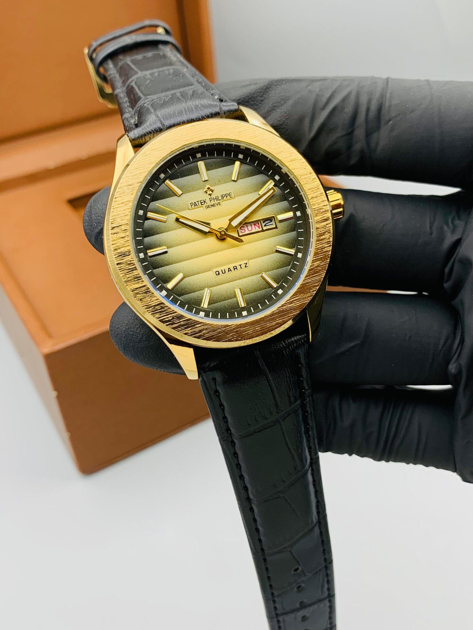 • Luxury Day And Date Quartz Wrist Watch for Men with Leather Strap