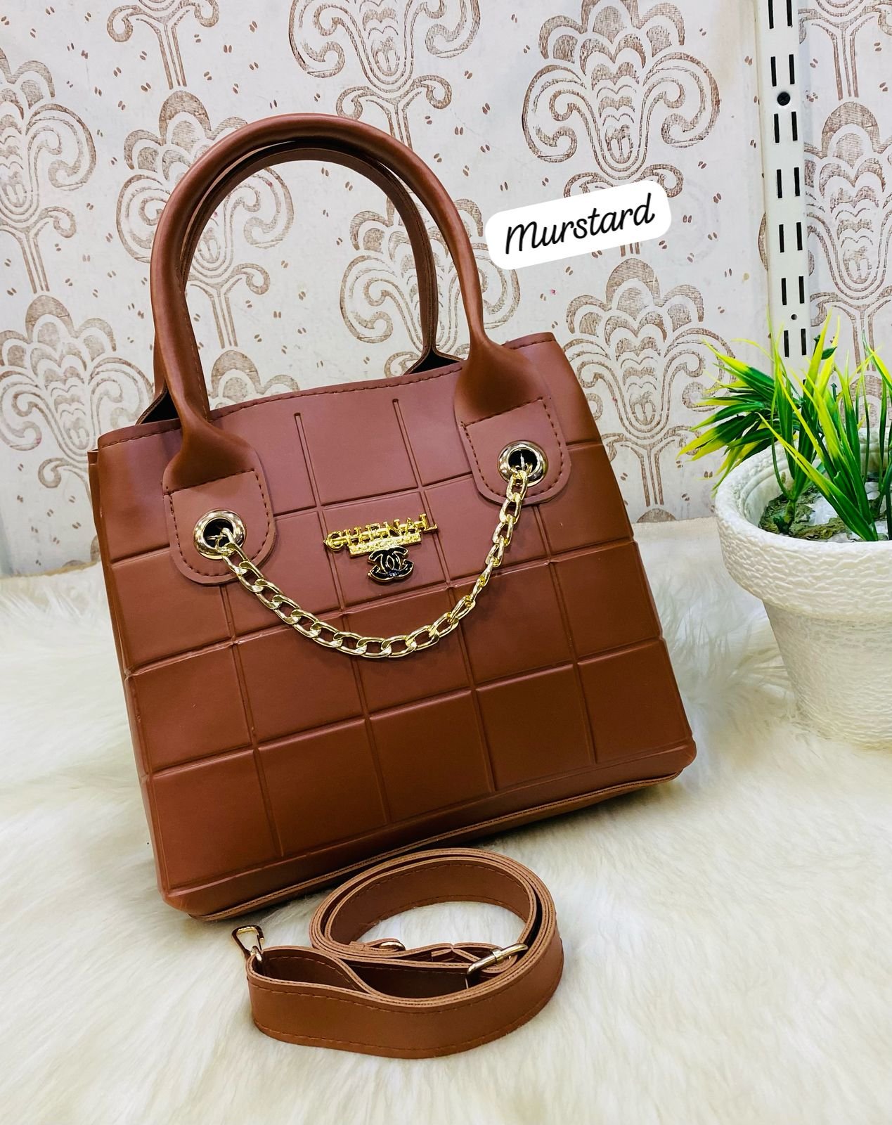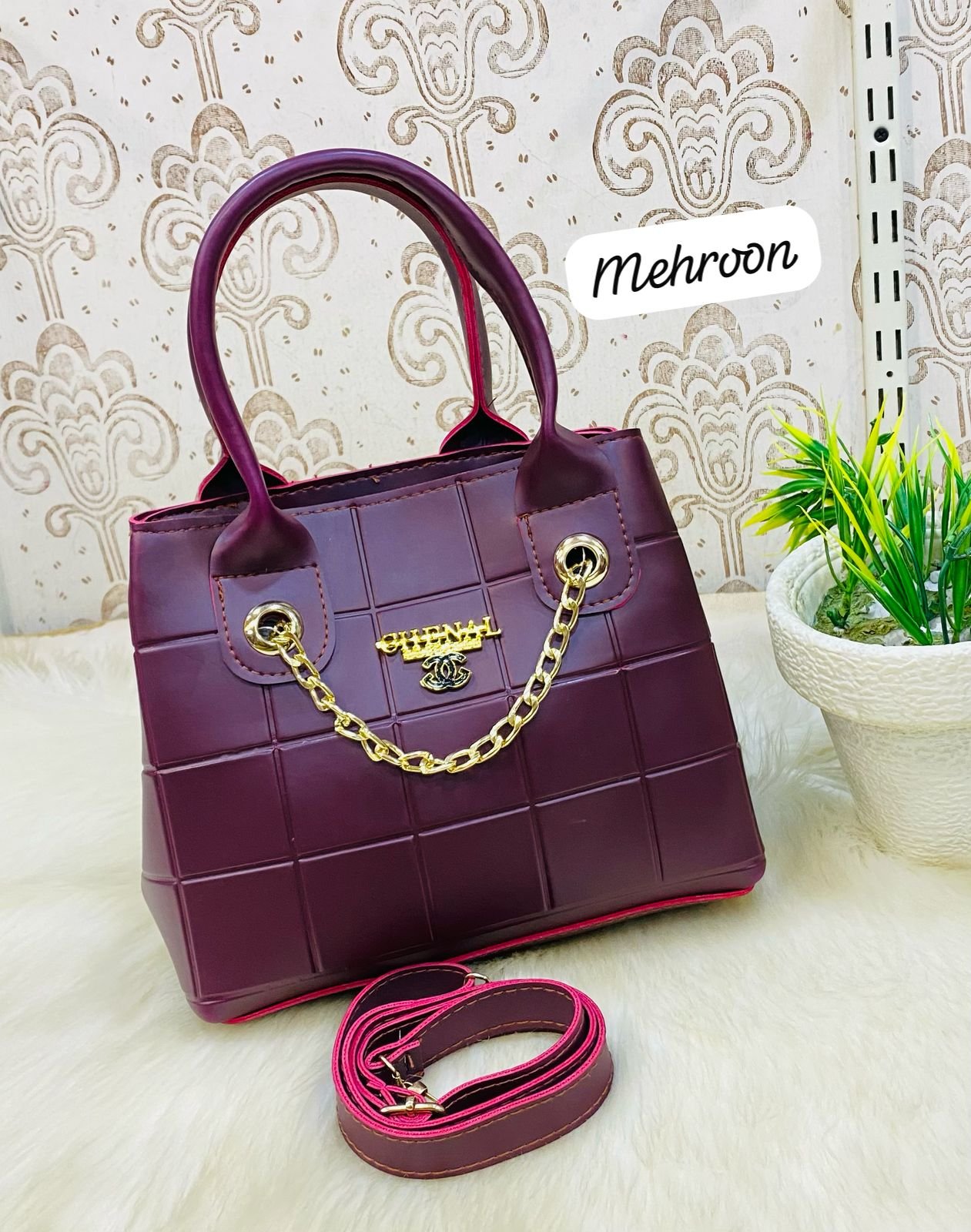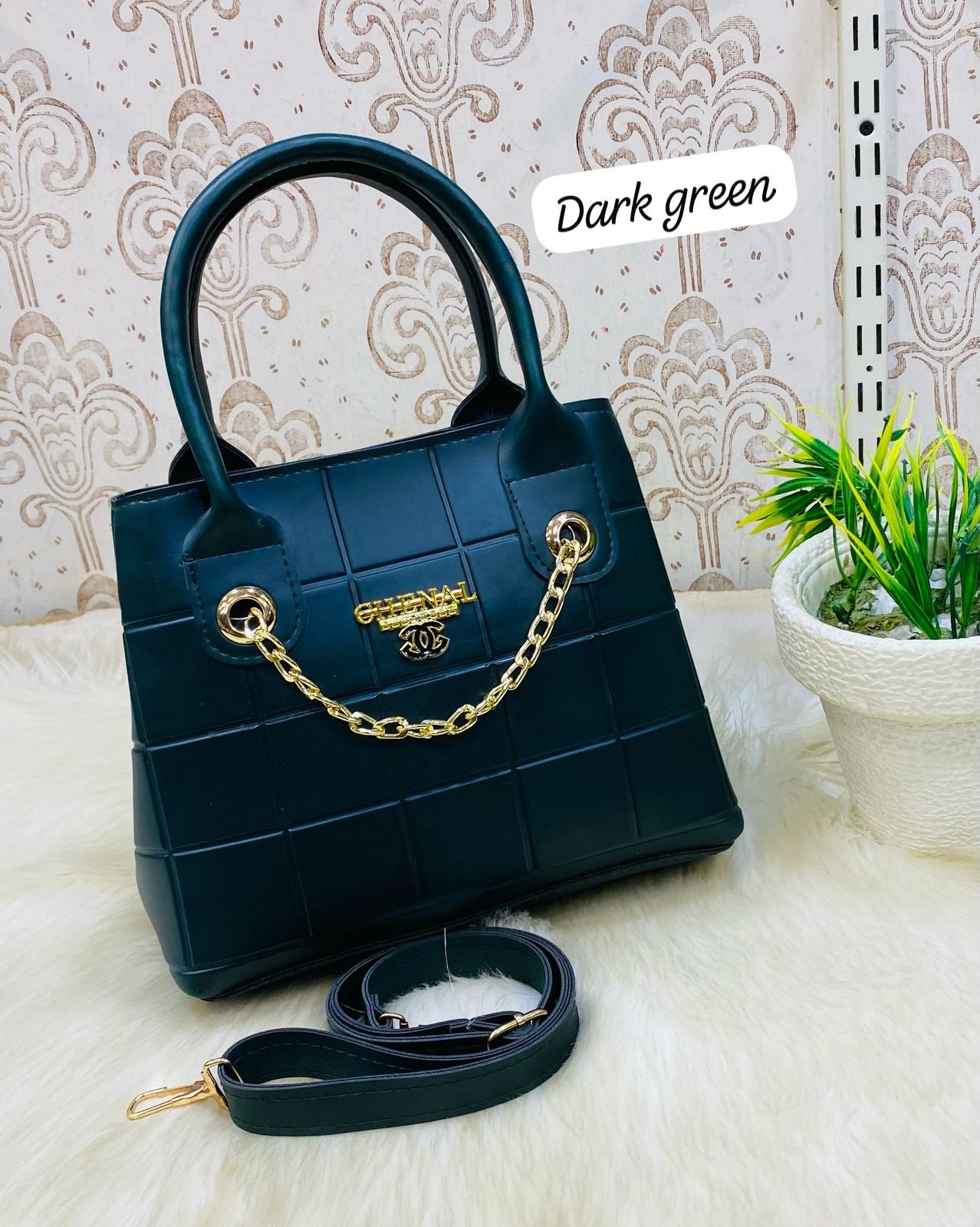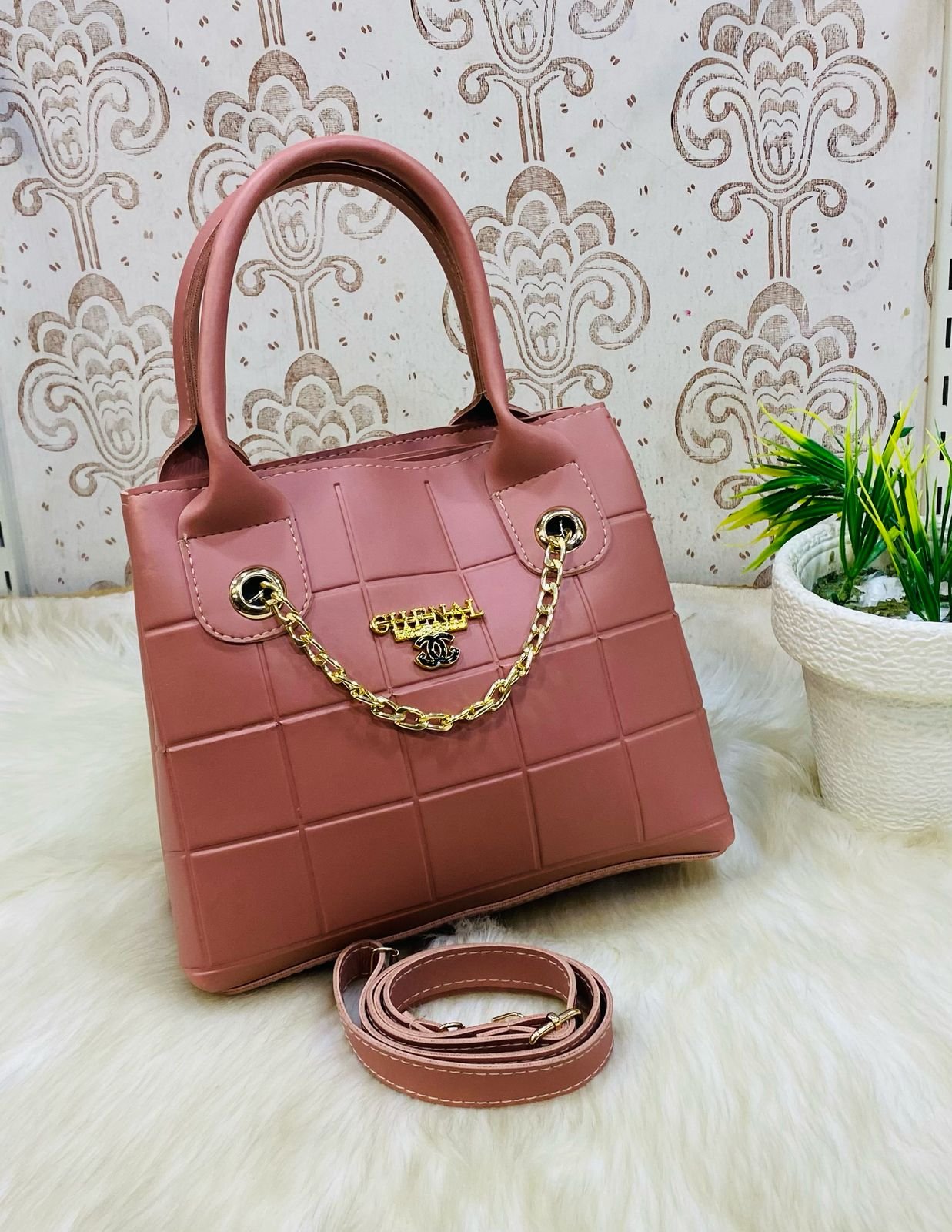 - Gold Chain Accent – Stylish gold chain detailing enhances the bag’s high-end, luxurious look.