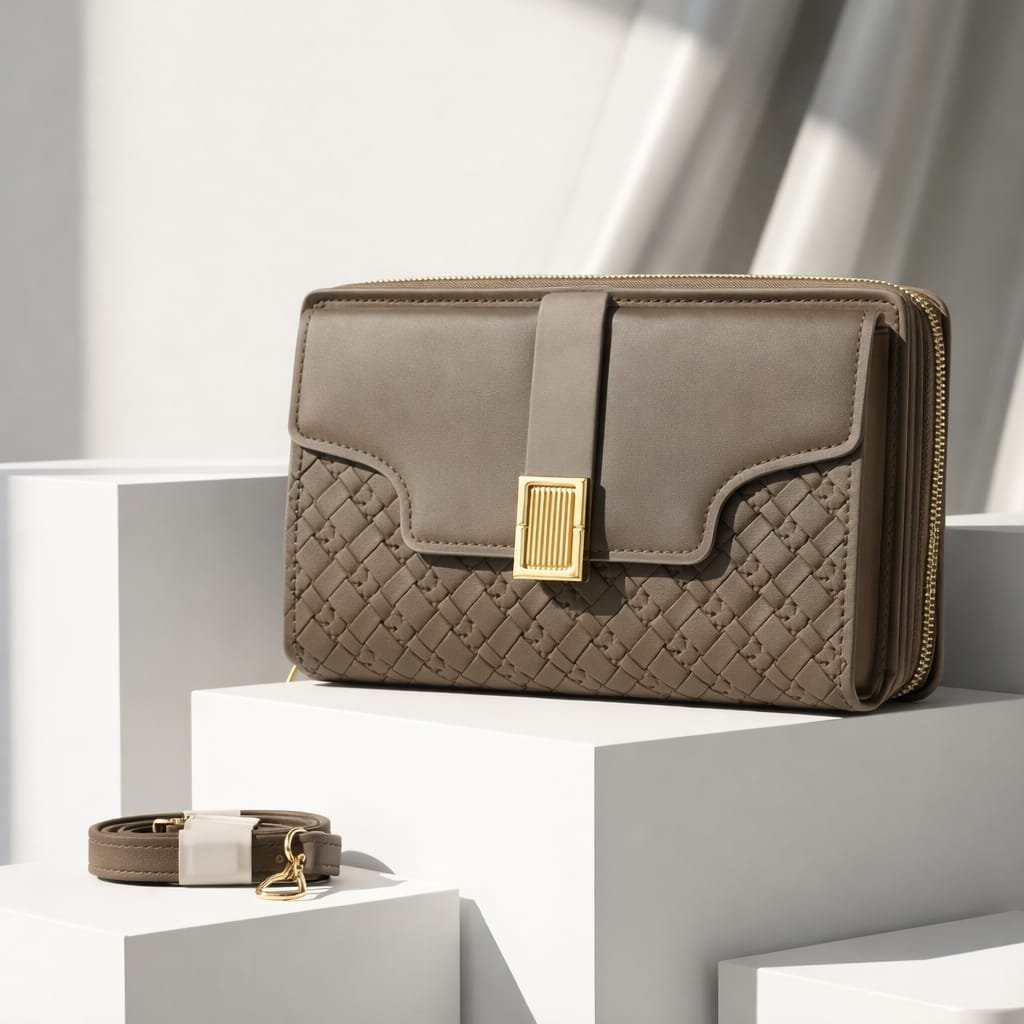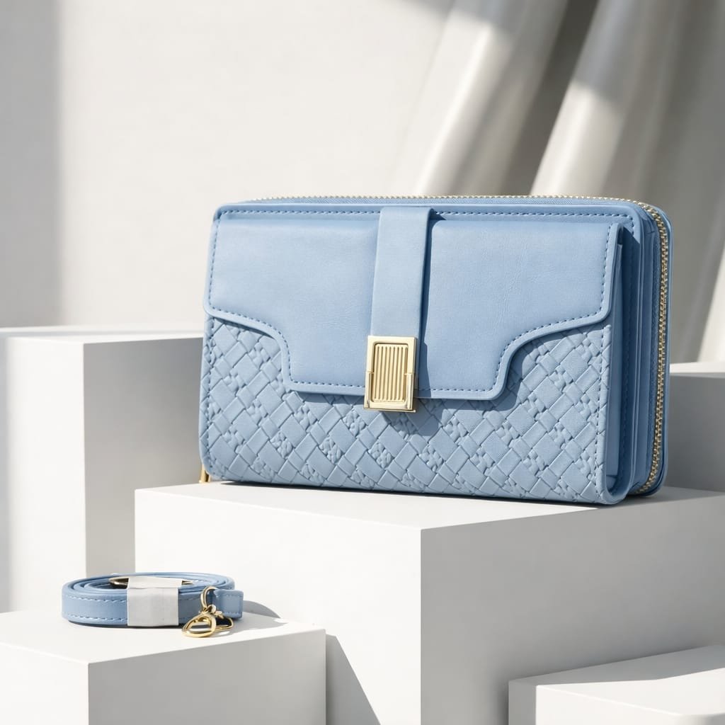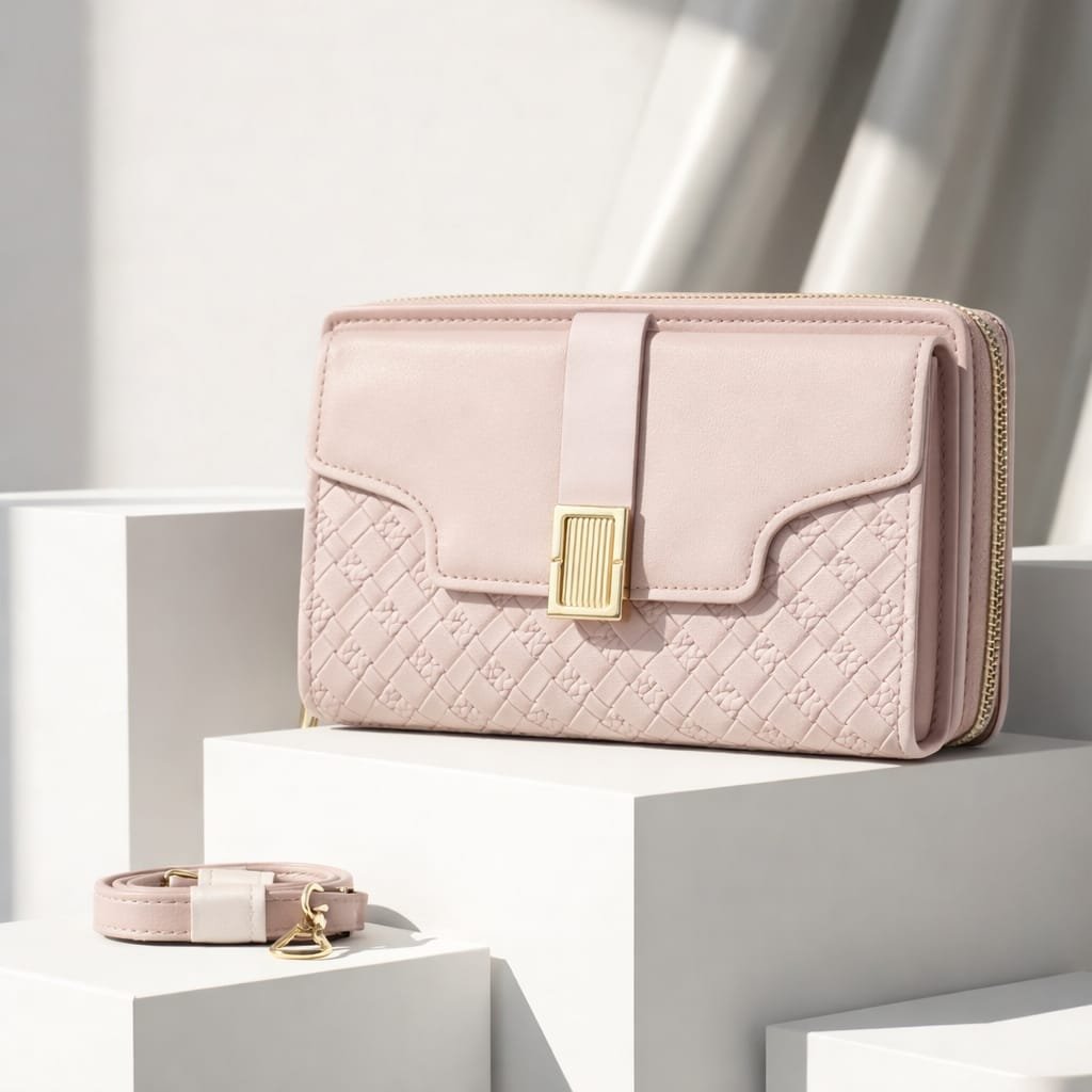 Be the first to review “Luxe Quilted Zippered Clutch With Signature Metallic Clasp And Crossbody Strap” Cancel reply