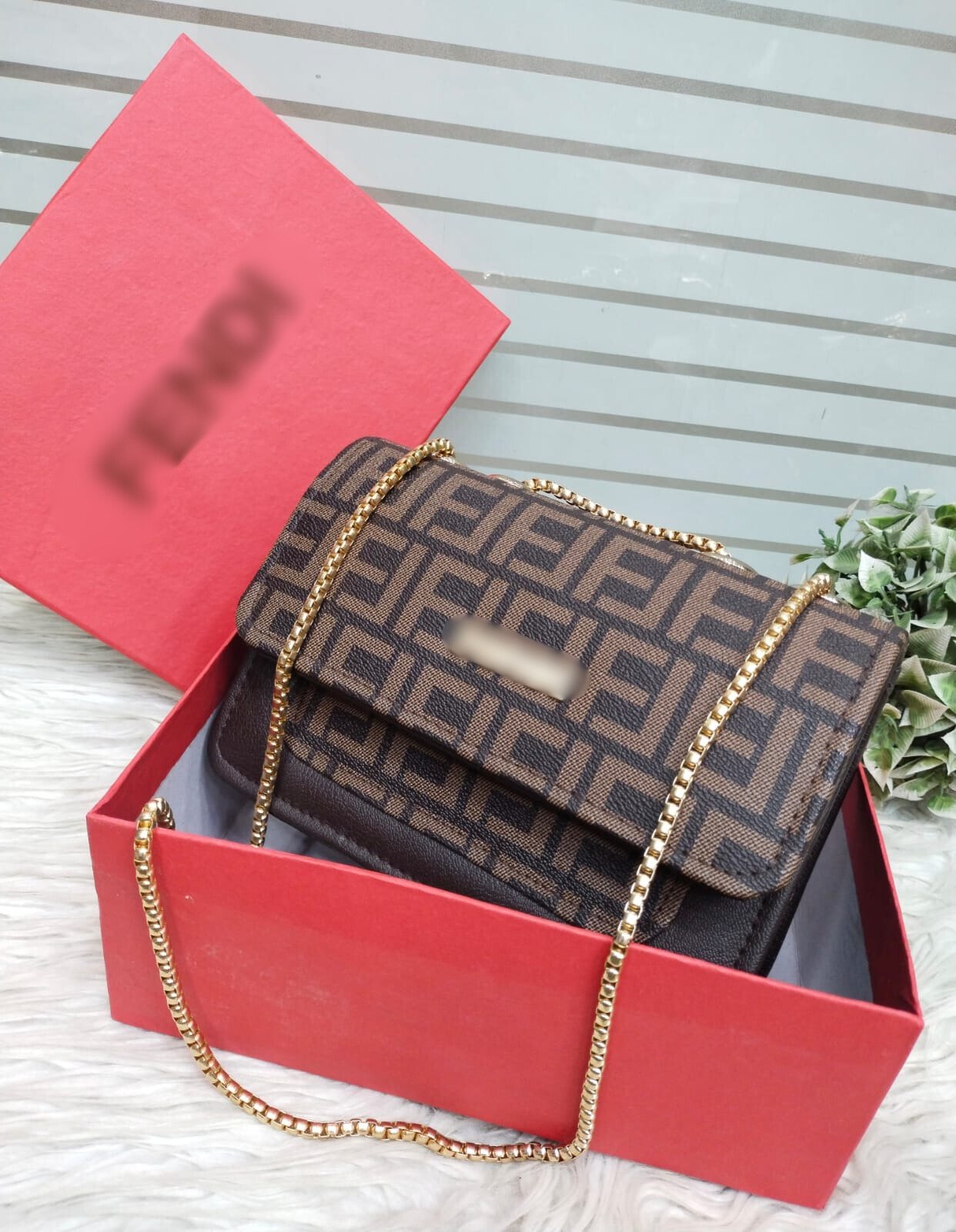 Elegant Handcrafted Box Clutch for Women with Faux Fur Handle and Gold Chain Strap