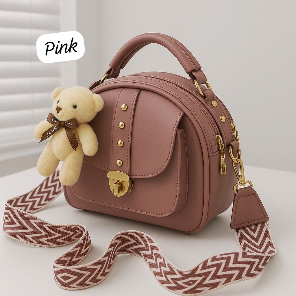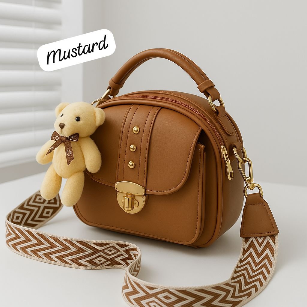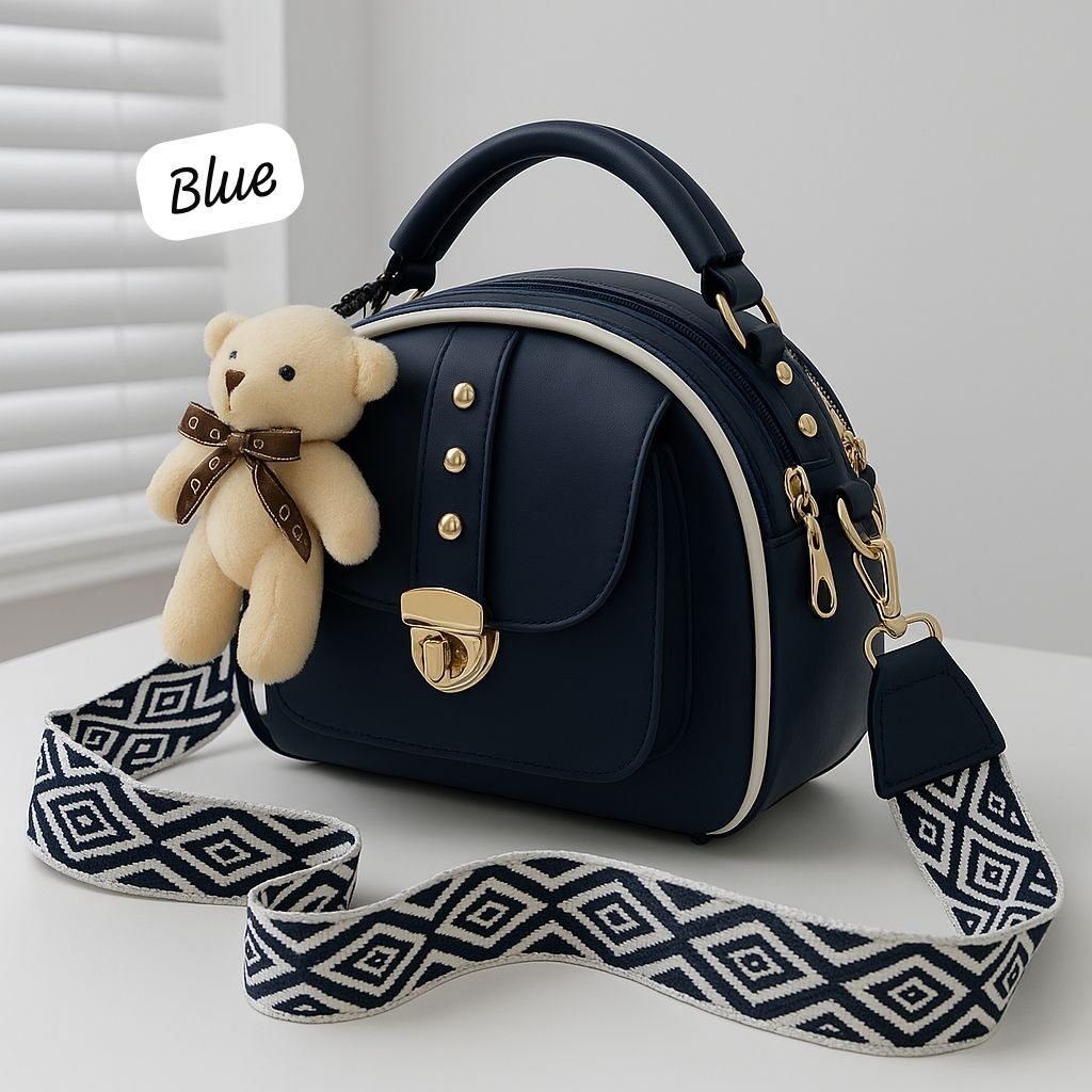 Step up your style with the Premium Crossbody Bag with Gold Accents & Teddy Keychain, designed for women who love chic and playful fashion. This elegant crossbody bag features luxurious gold detailing that adds a sophisticated touch, while the adorable teddy keychain brings a fun, youthful vibe. Crafted from high-quality materials, it offers durability and a smooth finish. The adjustable strap ensures comfort and versatility, making it ideal for shopping, travel, or casual outings. Spacious yet lightweight, this crossbody bag perfectly balances elegance and practicality — a must-have accessory to elevate your everyday fashion effortlessly.