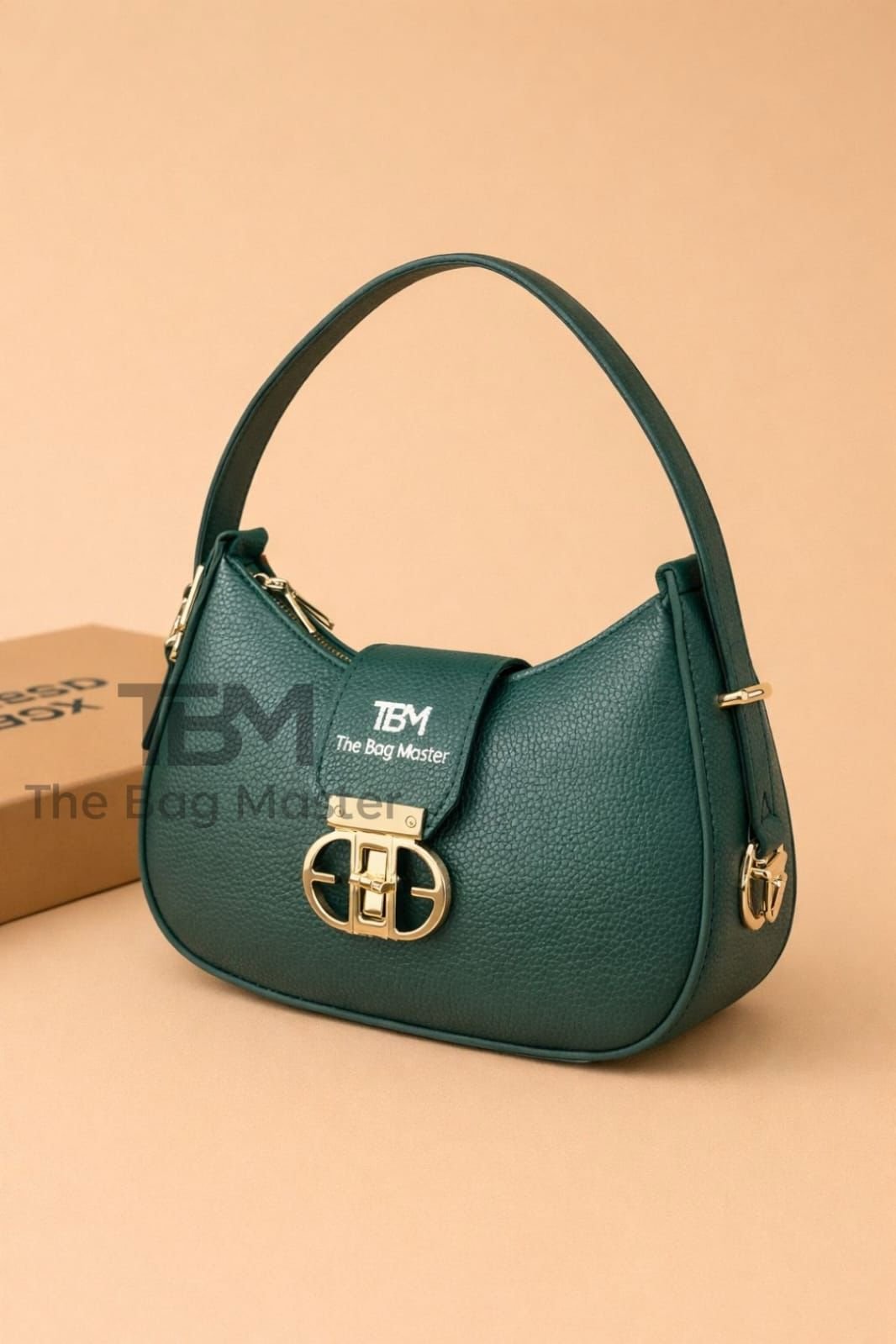 Premium Grained Crescent Bag With Signature Hardware