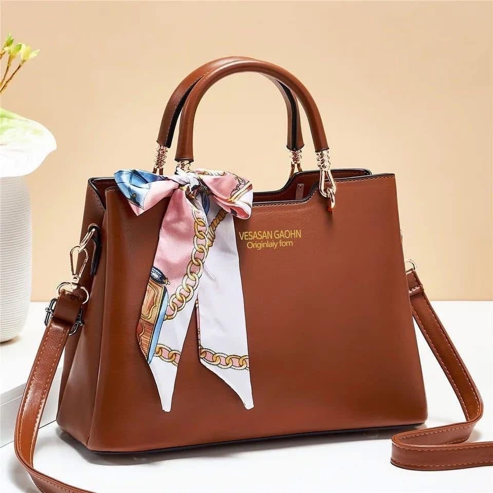 Sasan Gaohn Premium Structured Satchel With Decorative Silk Scarf And Gold Tone Hardware